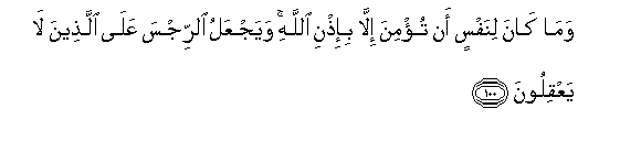 100. Na hawezi mtu kuamini ila kwa idhini ya Mwenyezi Mungu. Naye