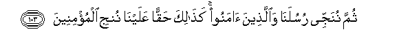 103. Kisha Sisi huwaokoa Mitume wetu na walio amini. Ndio kama hivyo,inatustahiki kuwaokoa Waumini.103