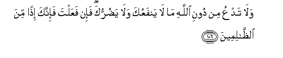 kitu wala hawakudhuru. Ukifanya hivyo basi utakuwa miongoni mwa walio dhulumu.106