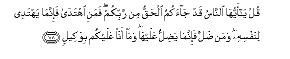108. Sema: Enyi watu! Haki imekwisha kukujieni kutoka kwa Mola wenu