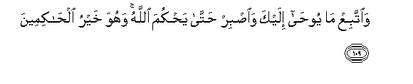 109. Na wewe fuata yanayo funuliwa kwako kwa wahyi. Na vumilia mpaka Mwenyezi Mungu ahukumu, na Yeye ndiye mbora wa mahakimu. 109