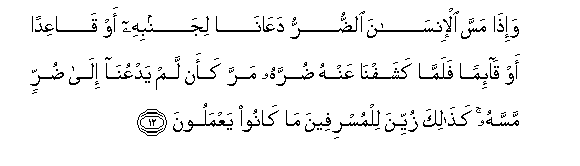 12. Na mtu akiguswa na shida hutuomba naye kaegesha ubavu, au kakaa,