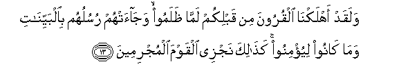 13. Na kwa yakini tumekwisha ziangamiza kaumu za kabla yenu walipo