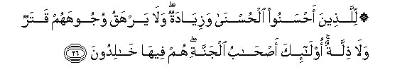 26. Kwa wafanyao wema ni wema na zaidi. Wala vumbi halitawafunika