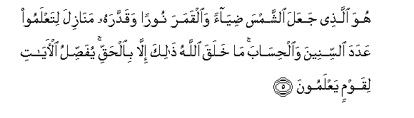 5. Yeye ndiye aliye lijaalia jua kuwa na mwangaza, na mwezi ukawa