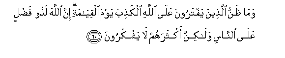 60. Na nini dhana ya wanao mzulia Mwenyezi Mungu kwa Siku ya Kiyama? Hakika Mwenyezi Mungu ana fadhila juu ya watu, lakini wengi wao hawashukuru.60