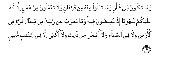 61. Na huwi katika jambo lolote, wala husomi sehemu yoyote katika