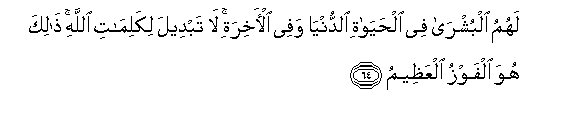 64. Wao wana bishara njema katika maisha ya dunia na katika Akhera.