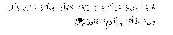 67. Yeye ndiye aliye kujaalieni usiku mpate kutulia humo, na mchana