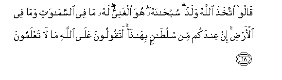 68. Wamesema: Mwenyezi Mungu ana mwana. Subhanahu, Aliye takasika!