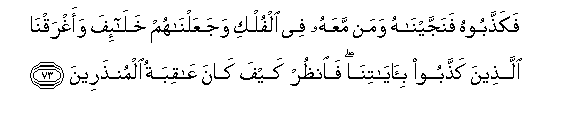 jahazi. Na tukawafanya wao ndio walio bakia, na tukawazamisha walio zikanusha Ishara zetu. Basi angalia vipi ulikuwa mwisho wa walio onywa.73