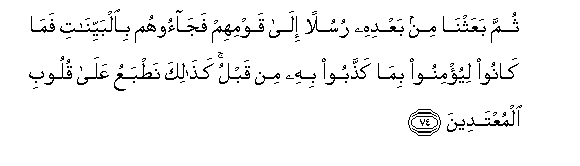 74. Kisha baada yake tukawatuma Mitume kwa watu wao. Nao wakawajia