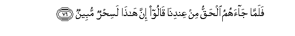 76. Basi ilipo wajia Haki kutoka kwetu walisema: Hakika huu ni uchawi dhaahiri.76