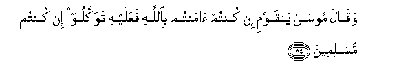 84. Na Musa alisema: Enyi watu wangu! Ikiwa nyinyi mmemuamini Mwenyezi Mungu, basi mtegemeeni Yeye, ikiwa nyinyi ni Waislamu.84