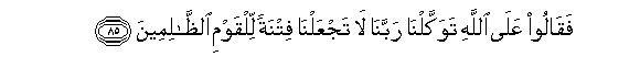 85. Wakasema: Tunamtegemea Mwenyezi Mungu. Ewe Mola wetu Mlezi! Usitufanye wenye kutiwa misukosuko na hao watu madhaalimu.85