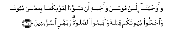 87. Na tukampelekea Musa na ndugu yake wahyi huu: Watengenezeeni