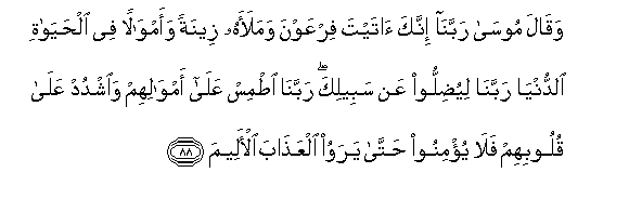 88. Na Musa akasema: Mola wetu Mlezi! Hakika wewe umempa Firauni
