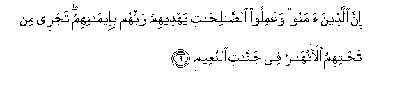 9. Hakika walio amini na wakatenda mema, Mola wao Mlezi atawaongoa