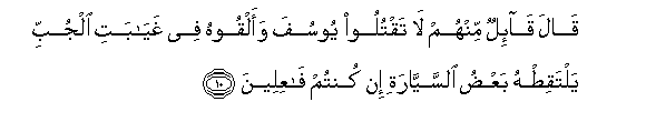 10. Akasema msemaji kati yao: Msimuuwe Yusuf. Lakini mtumbukizeni