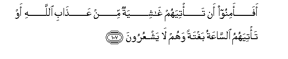 107. Je! Wanaaminisha kuwa haitowajia adhabu ya Mwenyezi Mungu ya