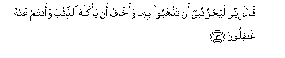 13. Akasema: Kwa hakika inanihuzunisha kwamba nyinyi mwende naye,