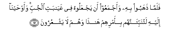15. Basi walipo mchukua na wakakubaliana wamtumbukize ndani ya kisima,