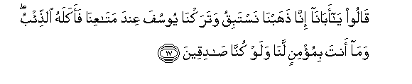 17. Wakasema: Ewe baba yetu! Hakika tulikwenda kushindana na tukamwacha