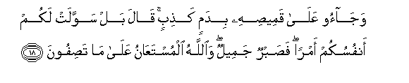 18. Wakaja na kanzu yake ina damu ya uwongo. Akasema: Bali nafsi