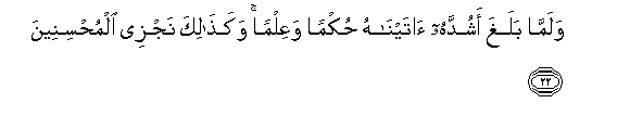 22. Na alipo fikilia utu uzima tulimpa hukumu na ilimu. Na kama hivi