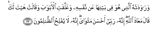 cha nafsi yake, na akafunga milango. Akamwambia: Njoo! Yusuf akasema: Audhubillahi!