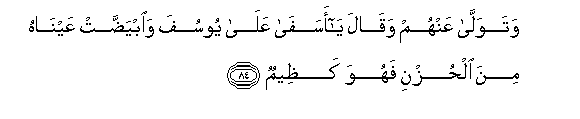 84. Naye akajitenga nao, na akasema: Ah! Masikini Yusuf! Na macho