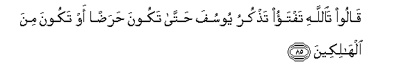 85. Wakasema: Wallahi! Huachi kumkumbuka Yusuf mpaka uwe mgonjwa