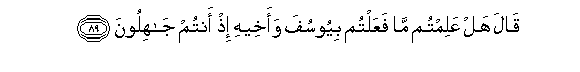 89. Akasema: Je! Mmejua mliyo mfanyia Yusuf na nduguye mlipo kuwa