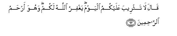 92. Akasema: Leo hapana lawama juu yenu. Mwenyezi Mungu atakusameheni,