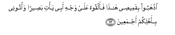93. Nendeni na kanzu yangu hii na mumwekee usoni baba yangu, atakuwa