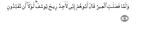 94. Na ulipo ondoka tu msafara baba yao alisema: Hakika mimi nasikia