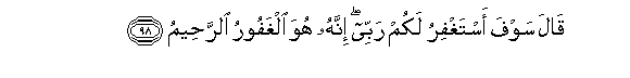 98. Akasema: Nitakuja kuombeeni msamaha kwa Mola wangu Mlezi. Hakika