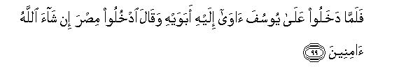 99. Na walipo ingia kwa Yusuf aliwakumbatia wazazi wake na akasema: