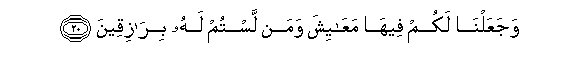 20. Na tumekujaalieni humo vitu vya maisha yenu, na ya hao ambao nyinyi sio wenye kuwaruzuku.
