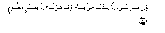 21. Na hakuna chochote ila asili yake inatokana na Sisi; wala hatukiteremshi ila kwa kipimo maalumu.