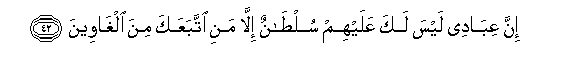 42. Hakika waja wangu, wewe hutakuwa na mamlaka juu yao, isipo kuwa wale wapotofu walio kufuata.