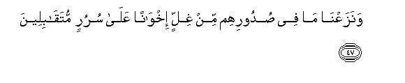 47. Na tutaondoa chuki iliyo kuwamo vifuani mwao, wawe ndugu juu ya viti vya enzi wameelekeana.