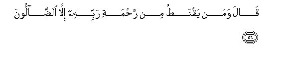 56. Akasema: Na nani anaye kata tamaa na rehema ya Mola wake Mlezi ila wale walio potea?