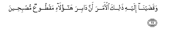 66. Na tukamfunulia hukumu hiyo, ya kwamba hata wa mwisho wao hao ikifika asubuhi atakuwa kesha katiliwa mbali.