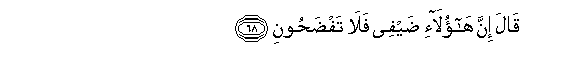 68. Akasema: Hakika hawa wageni wangu, basi msinifedheheshe.