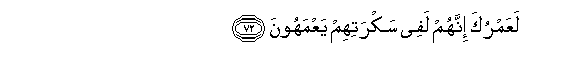 72. Naapa kwa umri wako! Hakika hao walikuwa katika ulevi wao, wakihangaika ovyo.