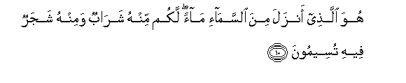 .10 Yeye ndiye anaye kuteremshieni maji kutoka mbinguni. Katika hayo nyinyi mnapata ya kunywa, na miti ya kulishia.