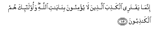 105. Wanao zua uwongo ni wale tu wasio ziamini Ishara za MwenyeziMungu. Na hao ndio waongo.