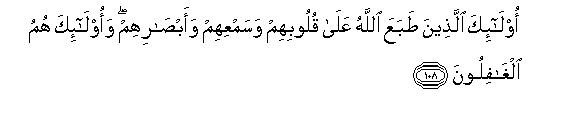 108. Hao ndio Mwenyezi Mungu ameziziba nyoyo zao na masikio yao na macho yao. Na hao ndio walio ghafilika.