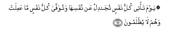111. Siku ambayo kila nafsi itakuja jitetea, na kila nafsi italipwa sawa sawa na a'mali ilizo zifanya, nao hawatadhulumiwa.